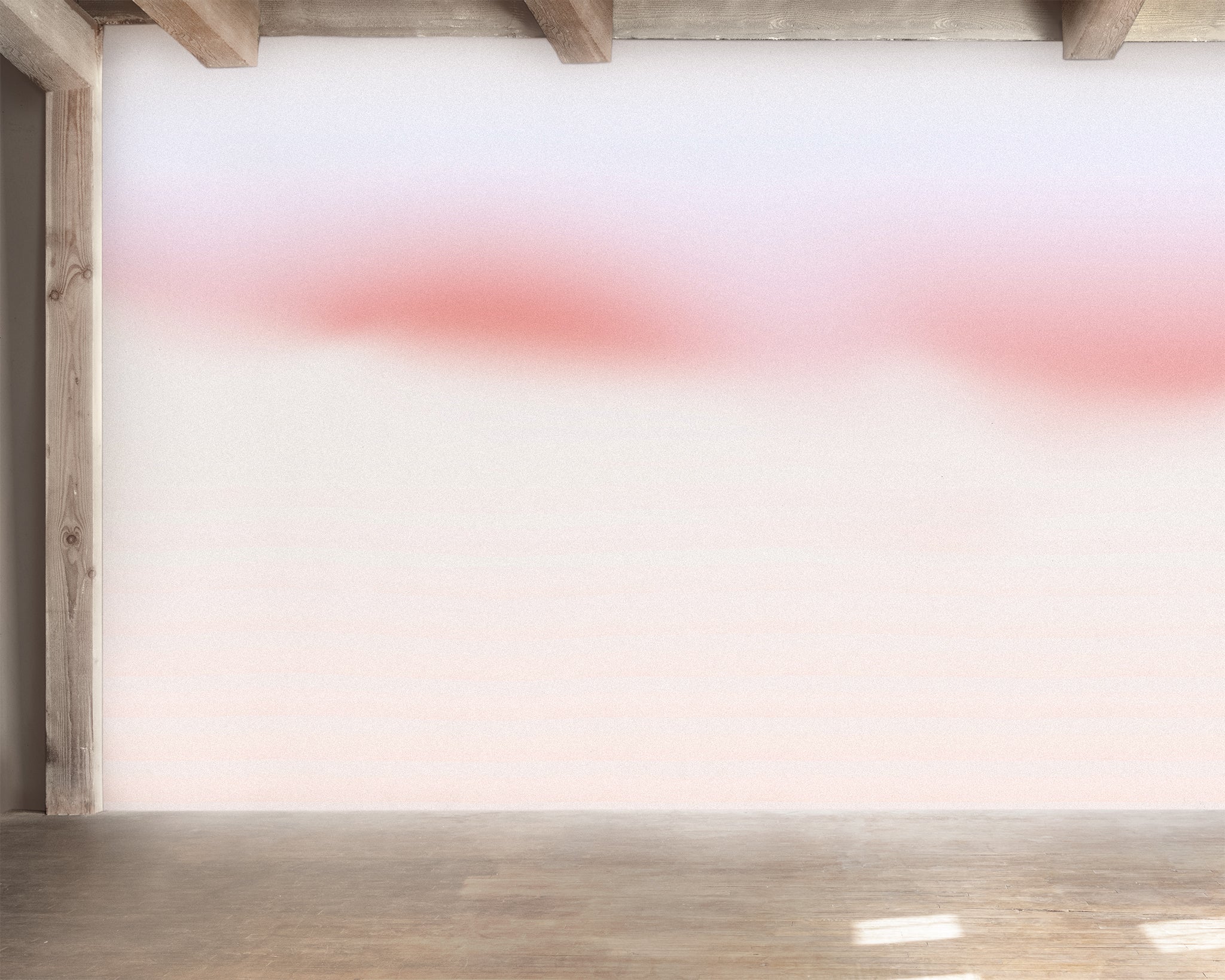 A hazy gradation mural with watercolor layers inspired by rammed earth layers